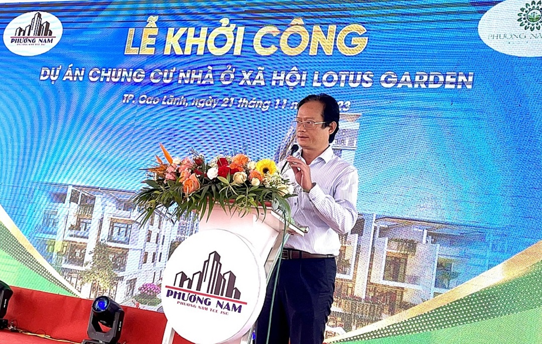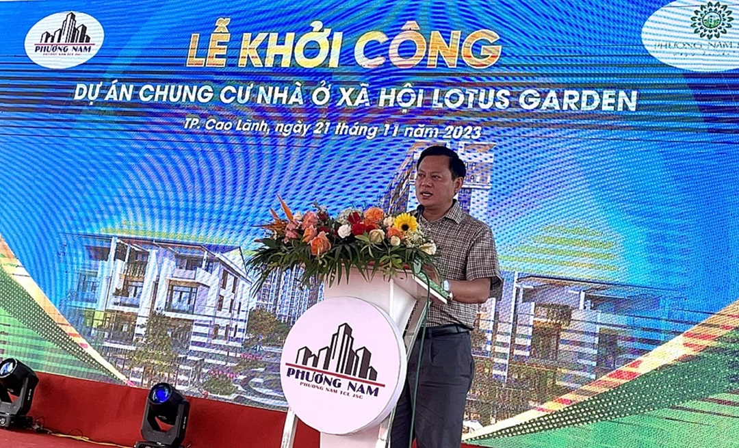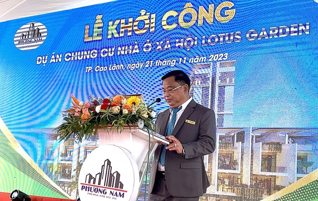 Tại buổi lễ khởi công, ông Hoàng Quốc Tiệp, Chủ tịch HĐQT kiêm Tổng Giám đốc Công ty Cổ phần khai thác xây dựng vận tải Phương Nam, cam kết cam kết về chất lượng, thẩm mỹ và tiến độ Nhà ở xã hội Cao Lãnh bằng cách sử dụng tối đa nguồn lực và nhân viên.